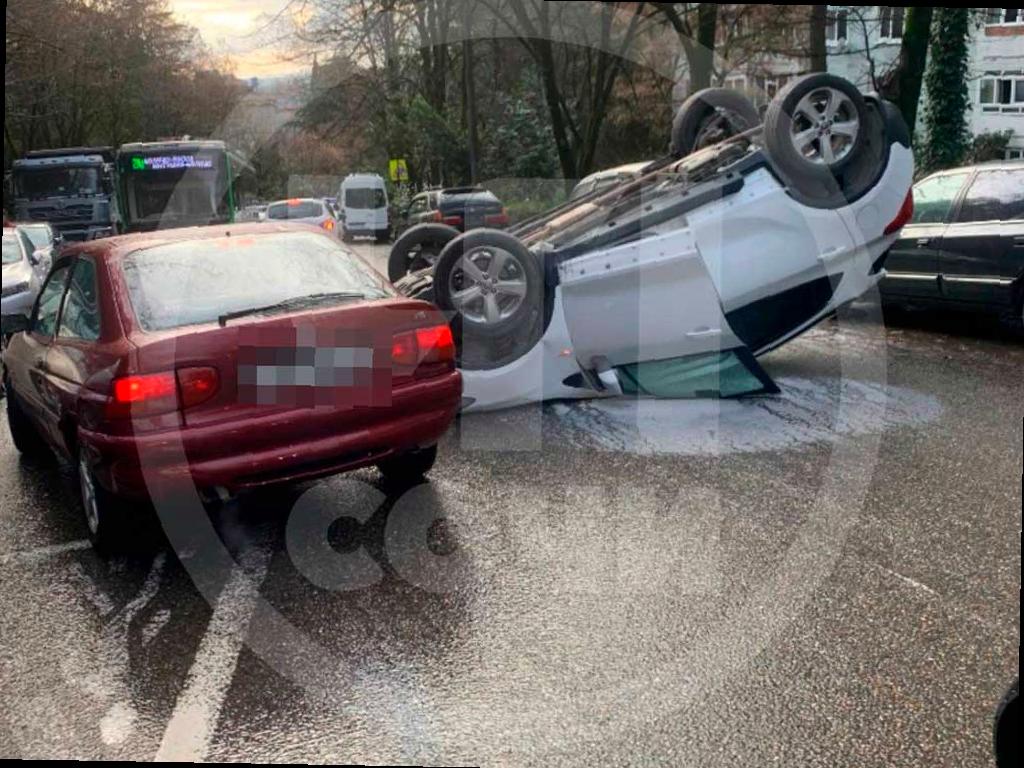 Сегодня днем в Центральном районе Сочи на улице Макаренко случилась необычная ситуация — легковой автомобиль перевернулся и лежит на крыше. Фотографии произошедшего опубликовал телеграм-канал «ЧП Сочи».