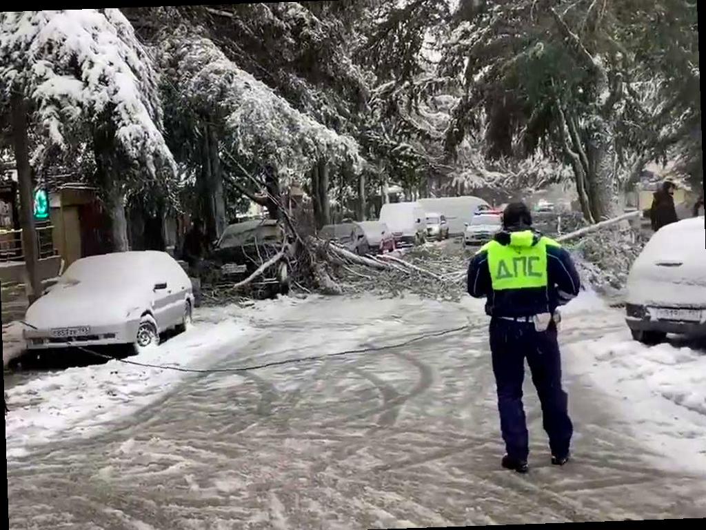 Сегодня днем в Лазаревском районе Сочи произошел инцидент. Дерево упало около дома №56 на улице Павлова из-за сильного снегопада. Госавтоинспекция Сочи сообщила об этом.